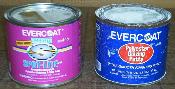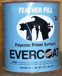 9.- Now, without sanding the epoxy primer but before 7 days after applying it, use thin 3M polyester glaze to fill every pin hole, one by one. This is tedious but the fantastic quality of the 3M glaze makes the job much easier. The 7 day window is important since the epoxy primer doesn't need to be sanded if the glaze and subsequent 2K is applied within this time frame.