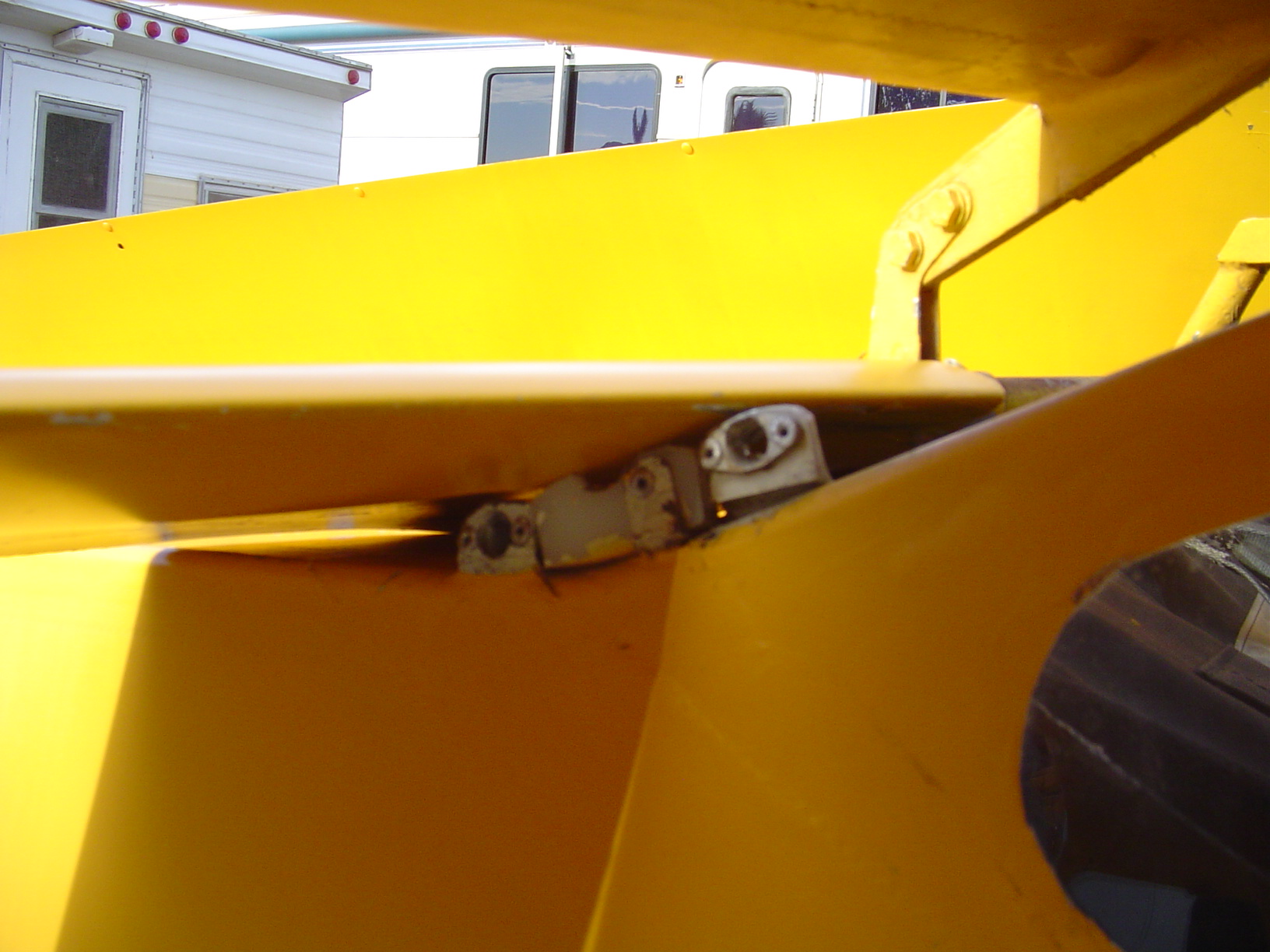 The very inboard ends of the flaperons are looking beat up. The bearing supports do not fold down and the clearance to the fuselage is very close.