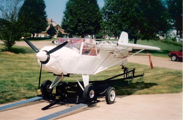 That is a nice looking trailer. Your pictures are making me want one like that. I am using a modified snowmobile trailer that has the bed above the wheels. It works okay but the plane sits up kind of high.