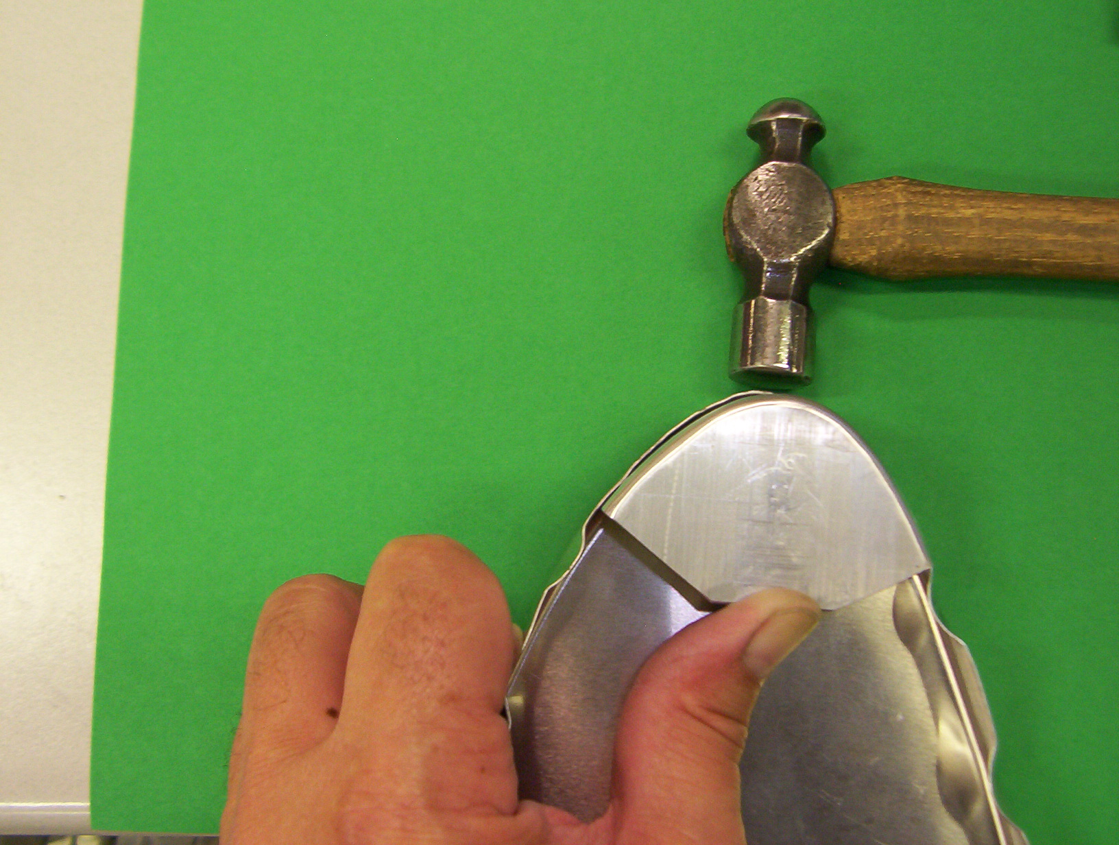 Small radius block of 3/4" aluminum to backup the short flange to qualify out the wrinkles.