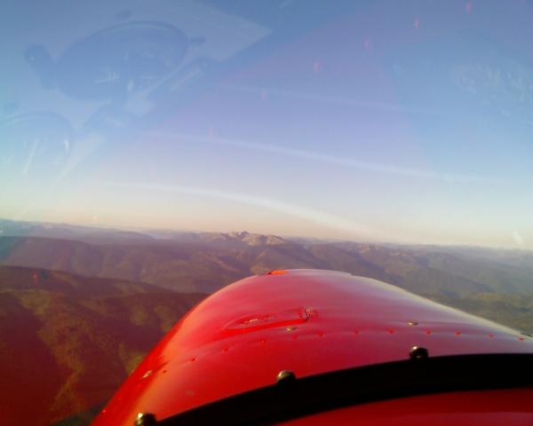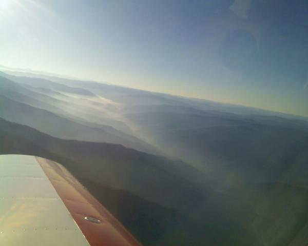 My first choice to Missoula was blocked by a forest fire, so I had to take the more narrow mountain pass. The cloud layer was thickening and lowering by the hour. The mountain peaks were about 8,500, the clouds at 9,000, the valley at about 4,000 and the pass only 6 to 8 miles wide. It was relatively tight fit meandering through the s-shaped valley. It culminated in a 4,500 foot decent in 2.5 miles at full throttle to land at Missoula airport. When I got on the ground and looked back at where I had just descended from, I yelled out loud. Yeeeehaw!