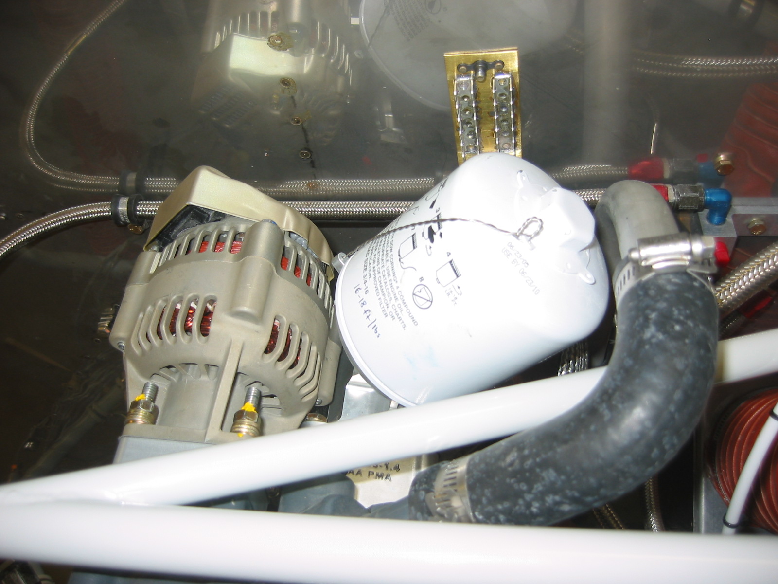 If you want to additionally use the B&C SD-20 alternator on the vacuum pad there is an interference issue with the inboard lower screw boss on the SD-20 and the upper inboard corner of the oil filter adapter. I strongly suspect that the interference issue would exist regardless of teh brand of 90 degree oil filter adapter. You have 2 solutions: