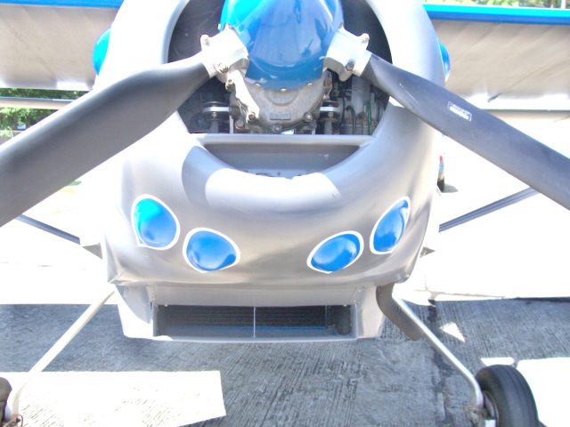 in place with two large hose clamps. Air comes in (see bottom of cowl
