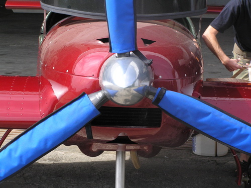 I've also attached another picture of a red 601 with the same cowl and the lower inlet seems to be missing much of the so-called "roof". You can clearly see the oil cooler in there.