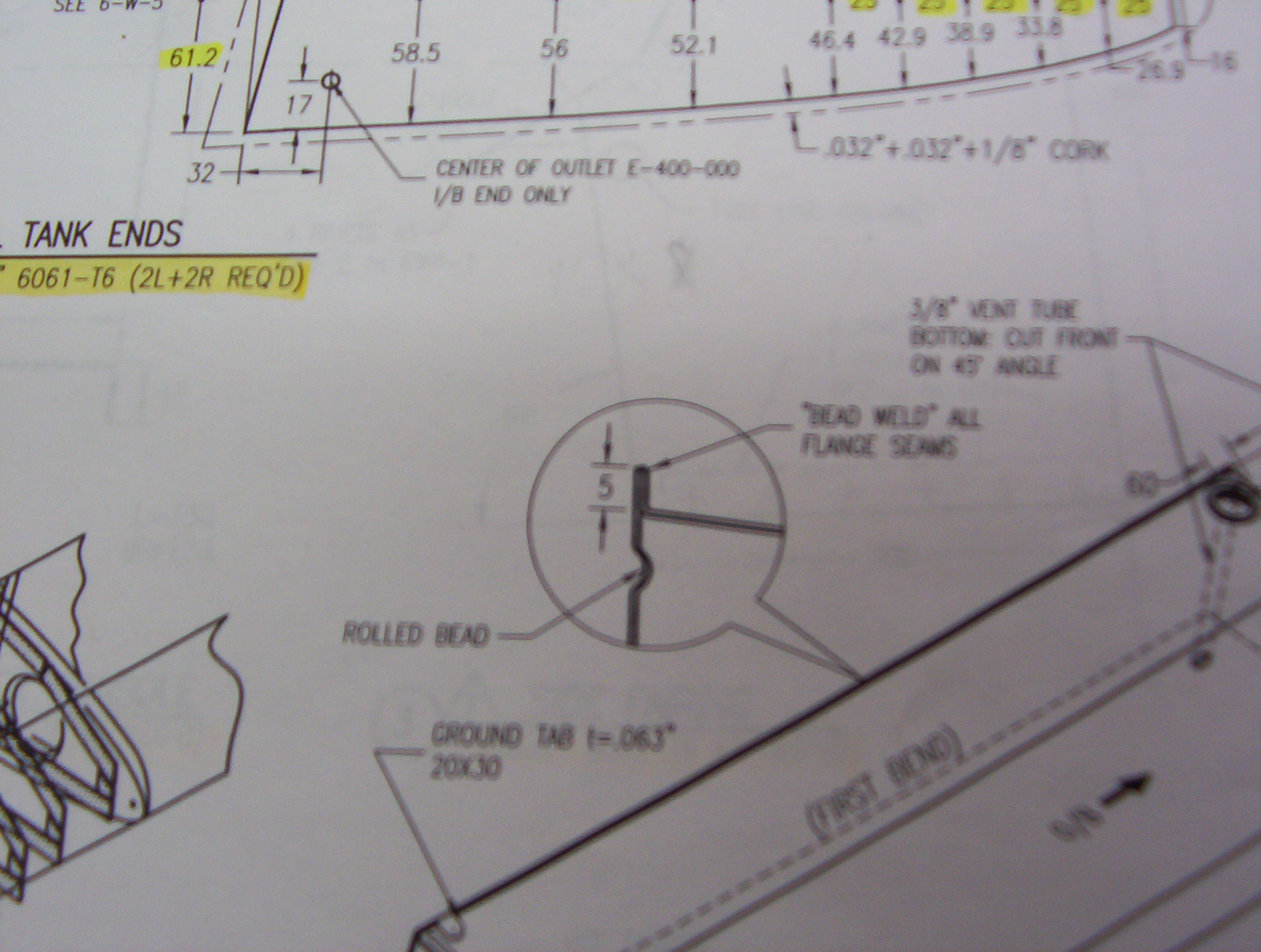 Made the next tank out of .032 and turned the flange on the tank ends in. Made it just like Ron said and in one evening I had a tank that didn't leak. I used 6061-T6 only because I didn't want to wait for the 5052.
