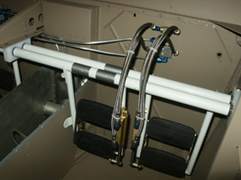 Secondly, there is aesthetics. I couldn't get over the fact that I am building an aircraft valued over $200,000 that has the same brake lines that are supplied with many ultralight kits. The footwell looks much more professional and much less cluttered.
