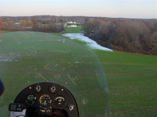 Bob flying a straight in approach to my friend Leonard's 600 foot strip