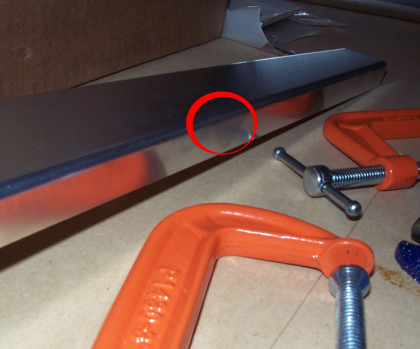 Thanks a lot for the advice. I used the technique you described and came out with exceptional results, with the exception of ever-so-slight remaining deformation due to the factors Dave Downey described in a previous e-mail (elastic deformation -- the dent bounced back a little bit). If I didn't put a big red circle in this picture, would you be able to tell?