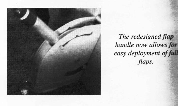 Simply put, I don't care for the location of the flap control handle. It seems to be in an awkward place. A simple flap control switch located on the panel makes a bit more sense to me. Regarding an electrical failure, I don't think losing your flaps on this airplane is a major issue since it can easily land anywhere flaps up.