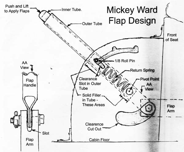 I am working on the forward cockpit of my CH701 kit and would like to find a better flap handle arrangement. Several years ago the Zenair news described an easier-to-use handle extension that had better mechanical advantage. The diagram for this handle from Z-news is attached. I have seen a newer versions that look better. If you have good pictures, construction drawings, or specs for similar handles, or builds them for others, please let me know.