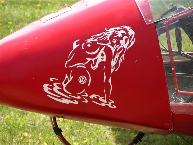 Just got back to Michigan and installed some nose art on my MKIIIC. Follow Kolb member Vic Peters made it for me. Note! the VW logo on her tush. I told my wife it reminded me of her. Yes I'm still married but she isn't happy. Wives..... go figure.