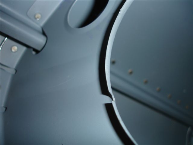 After reading about John G's bulkhead cracks, I checked mine over. I guess I got some of the parts that had stress cracks from hydro-forming the bulkhead and you can clearly see where Vans' filed them out.