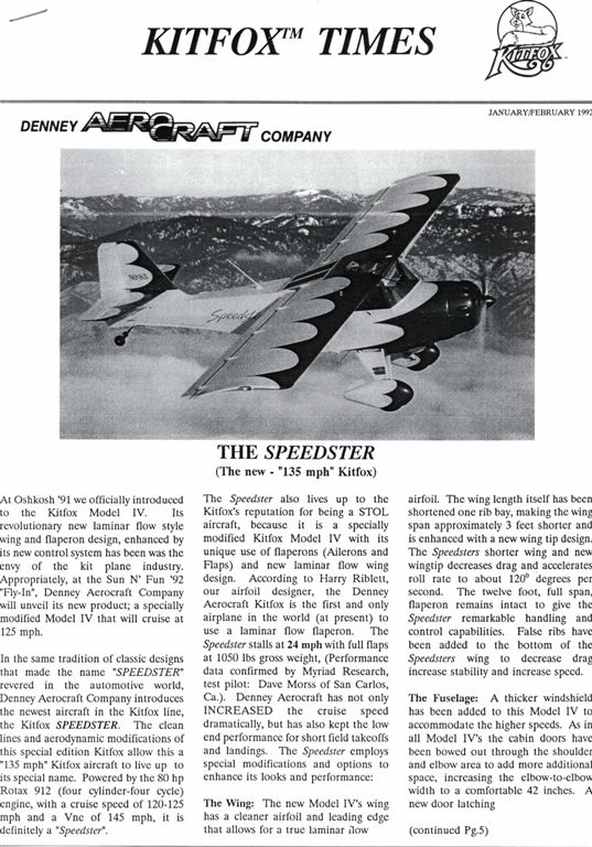 Speedster and later Kitfoxes considerably higher speeds than some of the