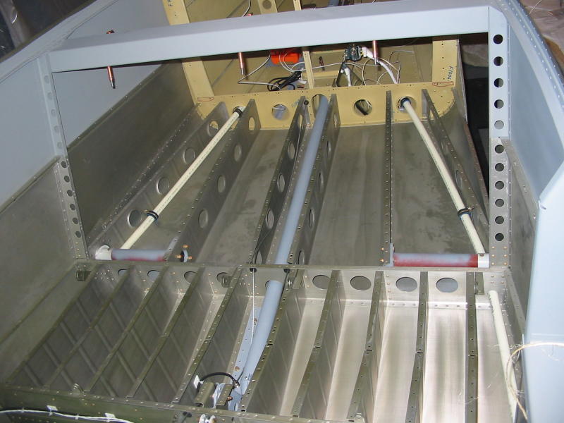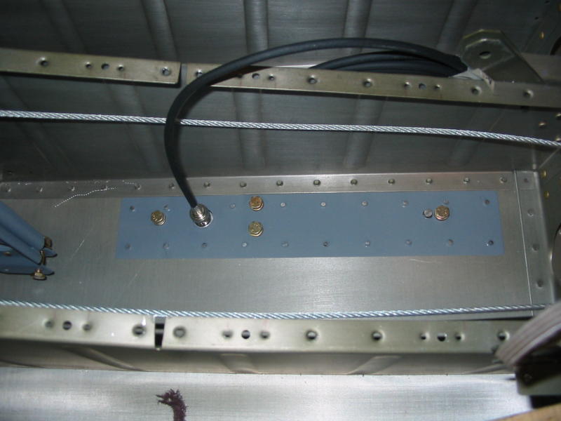 I don’t think between the rear seats is a good place for an antenna. The control rod is so low there that I think it would be too risky to have anything sticking up from the belly skin there. One possibility for a bent whip is to put it under the baggage floor (with nutplates in the skin), just off center, and then you can either get at it through the lightening holes or you can put in an access panel. I wouldn’t put an access panel under the rear seat floor because there has to be some structural reason that there are no lightening holes in that area. Has anybody had any problems putting them under the front seats, one on either side? I seem to remember someone mentioning that the gear legs can get in the way. We haven’t tested them, but have very good reception with that arrangement.