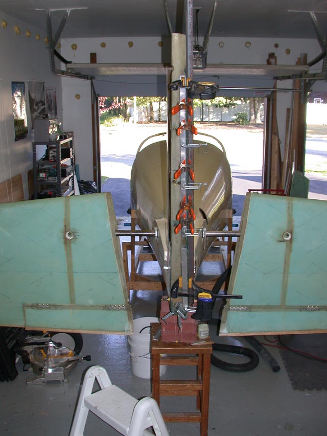 With the sternpost, clamp it up with 4 pieces of 1'' angle iron, remove the