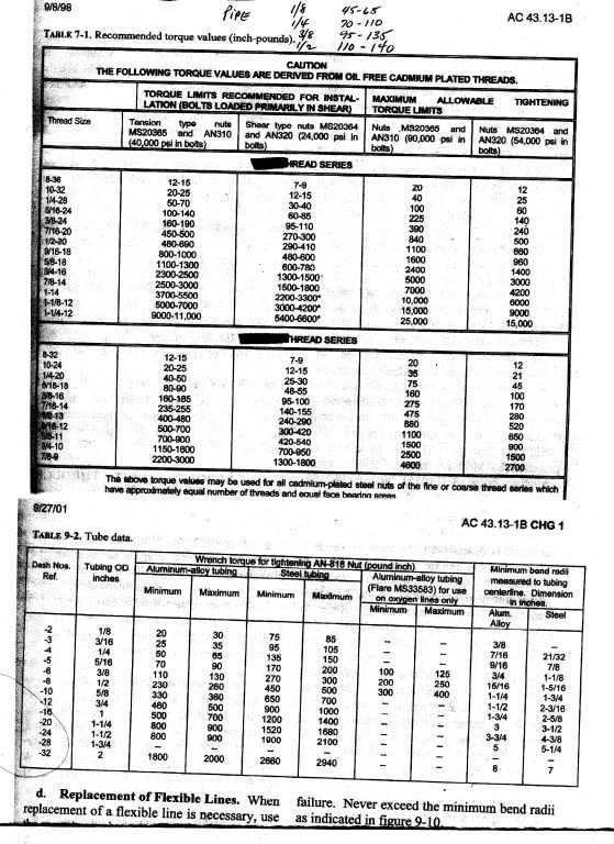 | Quote: | I think the torque values are listed in my copy of Standard Aircraft
