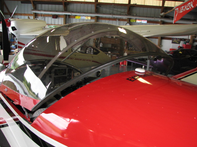 A few days ago someone asked about holding the canope open when they taxi. Here are a few pics of the link I made. It holds it open and will not let it flip up in a tail wind. If there is any interest in them I might make a limited number. It is for the forward tilting canope.