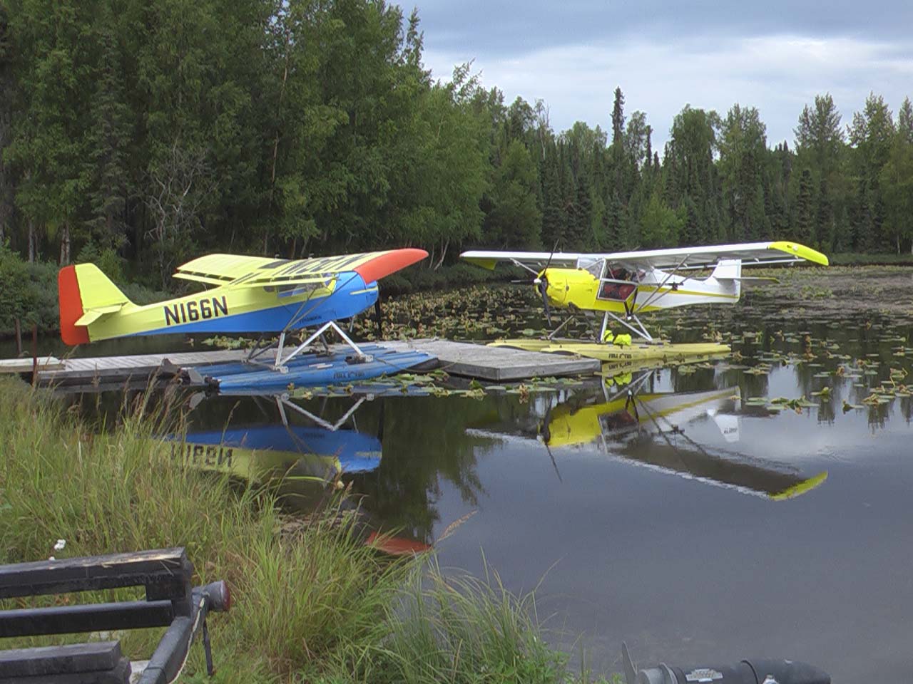 Attached are a few pics of a flight around Cook Inlet and Tuxidney Bay as well as one of us tied up at John Stoners dock. As you can see he has the original skystar rigging and placement. We are trying to talk him into moving the floats so he can get off the water at gross weight.