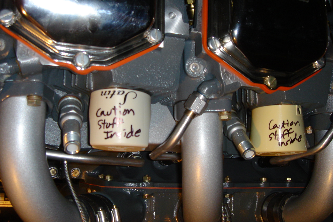 I was looking for a way to cover the exhaust ports on the engine, while it was hanging on the plane as we work our way through the Firewall Forward section. I didn’t have enough of those little custom covers that bolt on, but I found that a common lid from a can of spray paint works pretty well. You can flex it to get it over both bolt studs, and the ensuing tension keeps it in place. I put some desiccant crystals in the bottom of the lids for good measure.