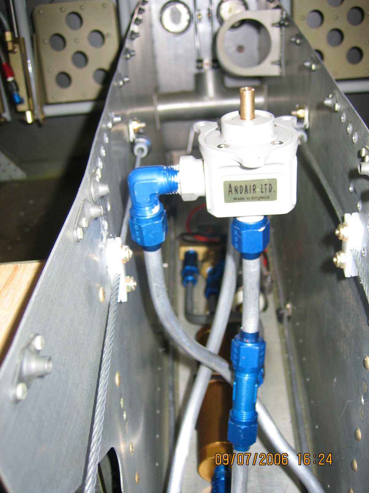 In the photo attached, when the valve is centrally located, it has the potential for the rudder cable to saw through the fuel line.