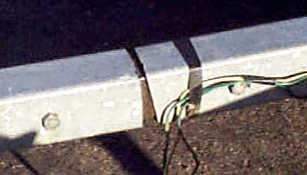 A close up of the cleats I welded to the trailer. 5/16 bolts hold the ramps to the trailer and form the hinge. I also had a temporary block behind the hinge on the deck for towing the trailer with the ramps in place but without the plane.