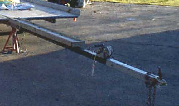 Extended tow arm in place. Note the platform (2X6) for the tail wheel to roll in while loading/unloading.