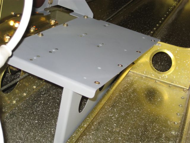 We constructed a flat plate approx .125 thick and installed it where the rear seat shoulder harness cable is bolted to the upper longeron. It spans the fuselage width wise and we relocated the seat belt cable to the front lip of this plate. Used the same three holes on each side that was originally for the shoulder harness anchor. Also over engineered it with an .063 Tee running laterally to stiffen any up and down vibrations. The NAV420 is on the top and centered laterally.