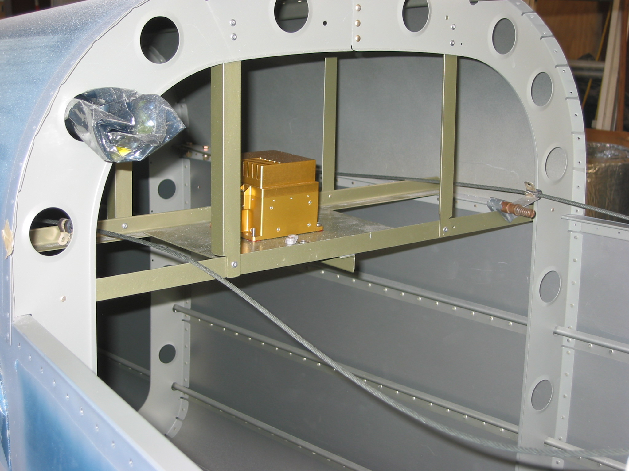 I originally built a shelf across the longerons behind the baggage bulkhead for a shelf to mount duel GRT AHRS and duel magnometers (AHRS centered and magnometers left and right sides). Due to interference from the battery (confirmed by GRT at OSH2007) I had to move the pilot's side magnometer to the wing tip. I just clecod on a 90 degree bracket to the wingtip rib (one cleco), leveled it, drilled holes for pop rivets, and mounted the magnometer. Now everything works great.