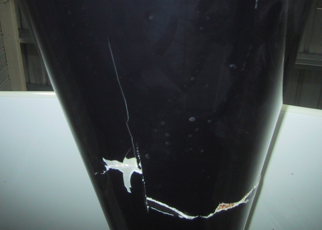 loose from the fiberglass, the strut was broken, and the front hinge was