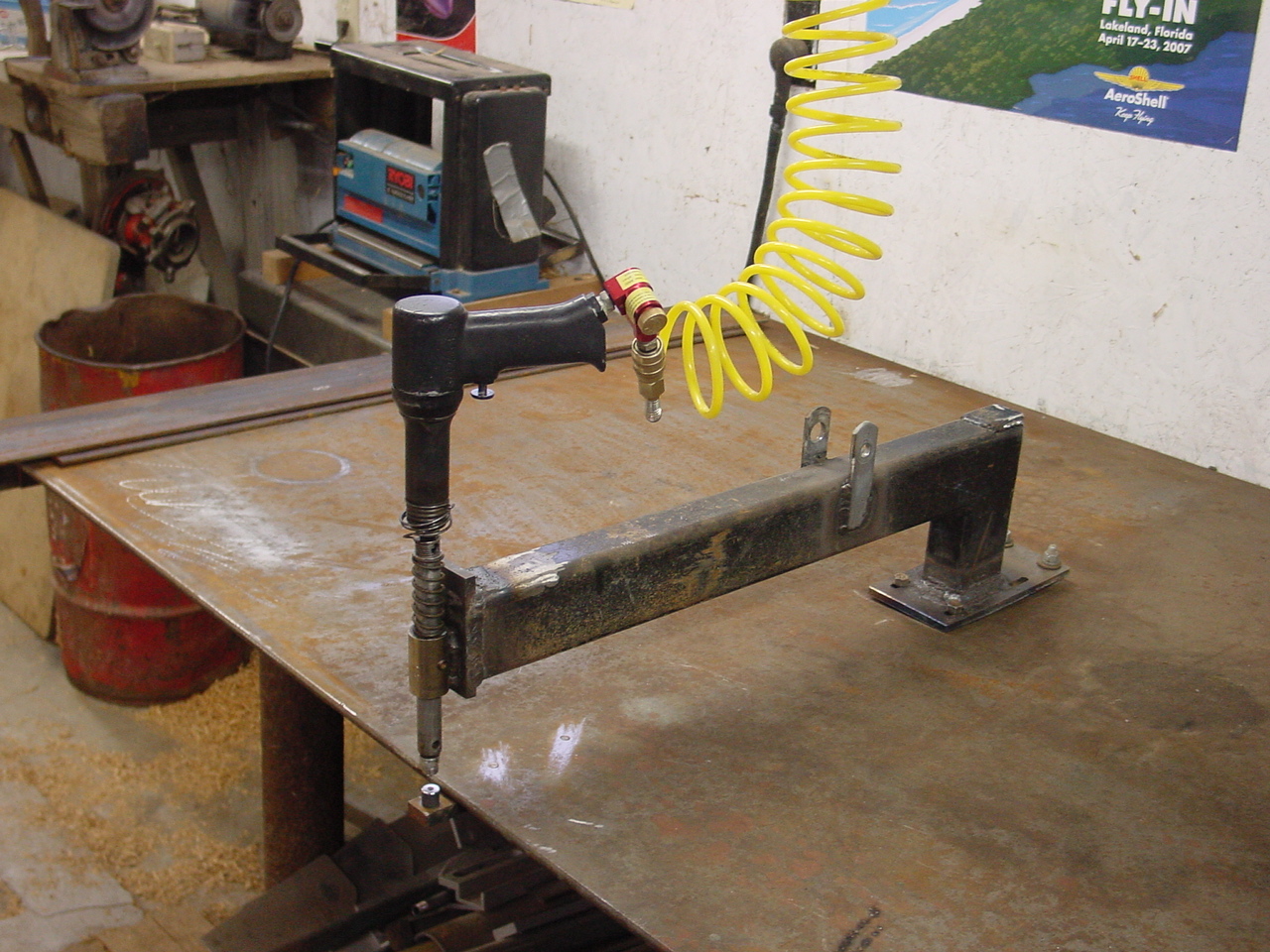 I also built a c-frame dimpler from some scrap I had laying around the shop. I mounted my rivet gun to the top of the piston for a very efficient way of dimpling skins. It really works quite well. See attachment.