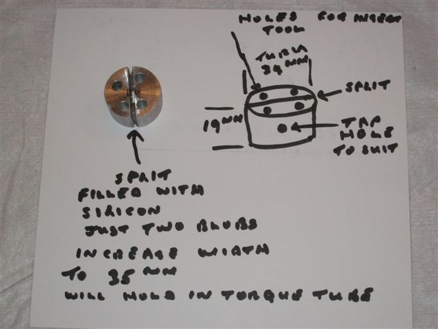 Turn insert nut diameter 34mm and 19mm thick. Cut in half, 2 small blobs of