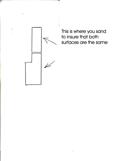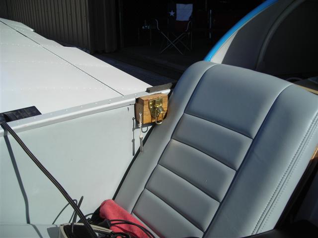Of course I can, that's what this forum is all about. From picture #1, look closely and you will see I had to make a space in the side covering for the oak block. Also the block must be cut in such a was as to fit the inside surface of the fuselage yet come up to the level of the flange where the canopy comes down. The upper block is just a block and requires no fitting however it must be thick enough where both surfaces match (drawing below) In picture #3 the ring in the bottom of the lower latch is clear. Be sure to buy the latches with the ring. In picture #4 the safety pin is clearly seen, this is to insert in the ring after the latch is latched to prevent opening. The safety pin is just a large nail sawed off, one end flatted out and a hole for the string drilled in it. After the two blocks are installed, the next step is to power sand the two surfaces with the canopy closed so that the two surfaces match.
