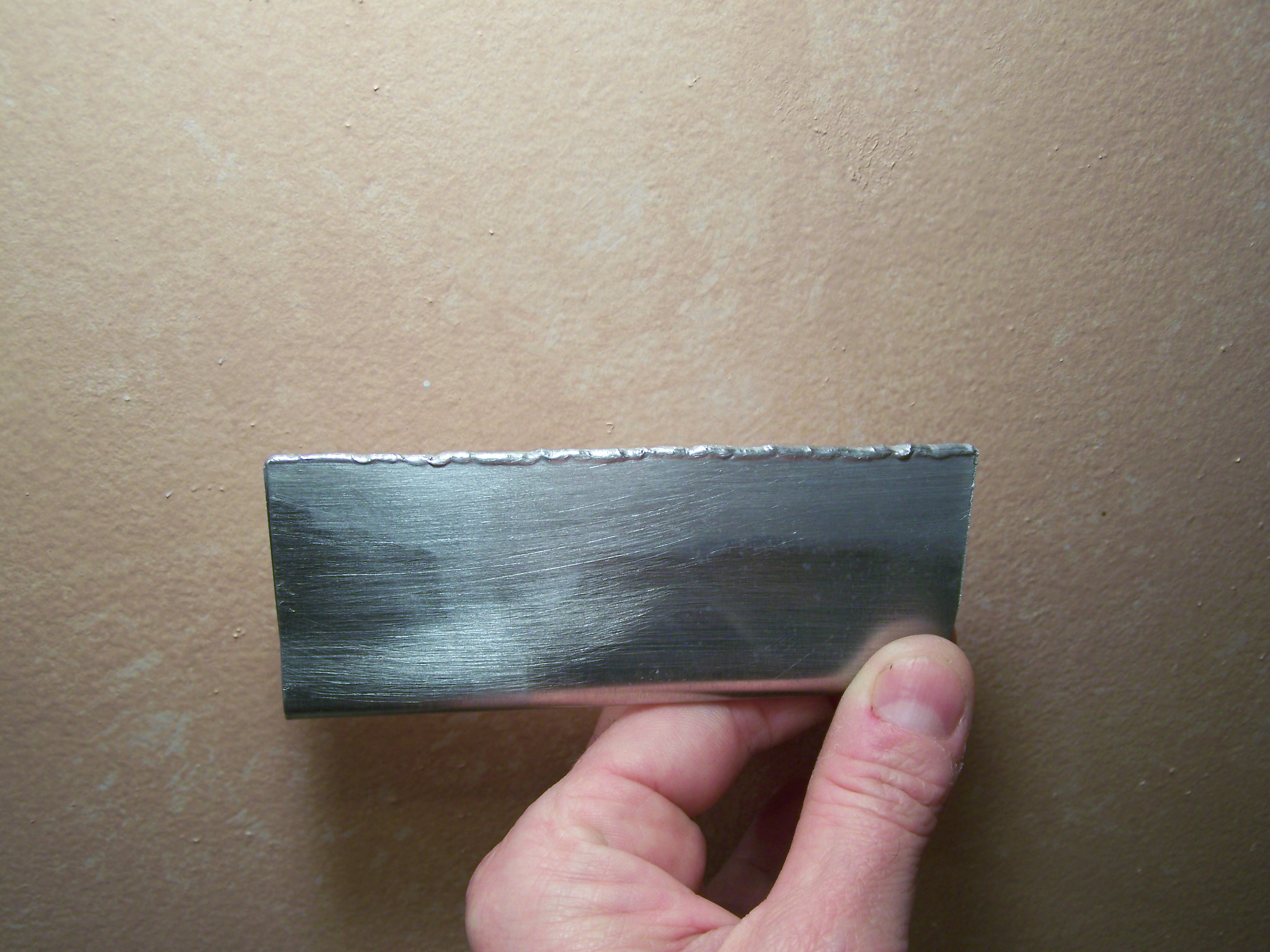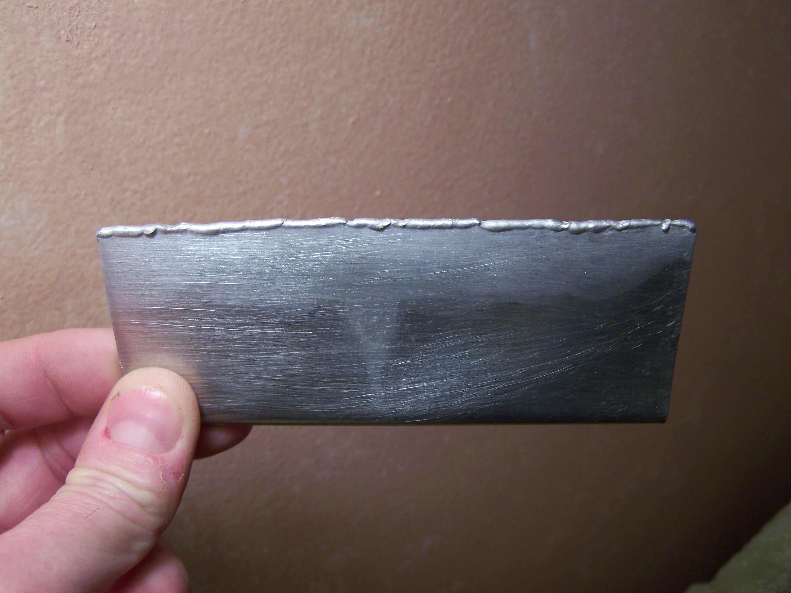 Here's some of my aluminum welds. Just some practice coupons. I did this one tonight. I think it's starting to get tank worthy, especially being that I'm now able to casually reproduce the results over and over.