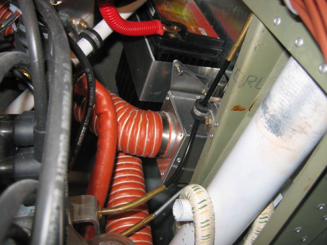 I don't have much to add to what Jeff already said other than to add a few close-up pictures of mine with the new firewall shelf configuration. I did not measure my degrees of motion, but there is enough to fully actuate the throttle from stop-to-stop with some to spare. Also, the brass cable adjuster going into the carby needs a bend to avoid the nose gear strut. As recommended by Jabiru, I used a tube bender. Just make sure not to make your bend right where the brass transitions from thick wall to thin wall. I will break there if you do. Look down the inside of it to see where it transitions.