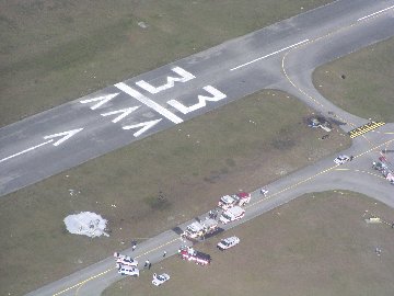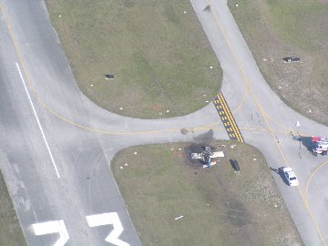 runway and parallel taxiway, coming to rest inverted, and on fire. Both