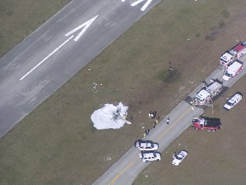 runway and parallel taxiway, coming to rest inverted, and on fire. Both