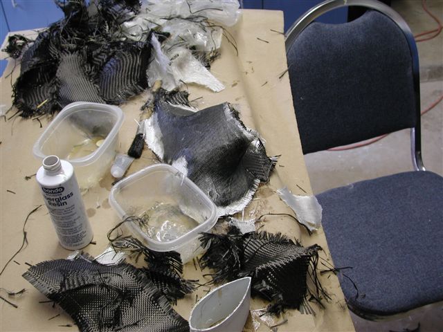 Note: 10 layers of glass mat ( video), if I used that much my part would weigh 100 lbs. and be an inch thick.