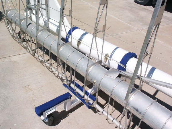 I just finished my "Uncle Craig designed" boom support, with my own modifications. Since my ailerons do not unhook like the usual method, I did not need the tall support shaft, to carry the ailerons. My ailerons are secured with their own cushioned frame, and cinched down to the boom support in the provided hooks.