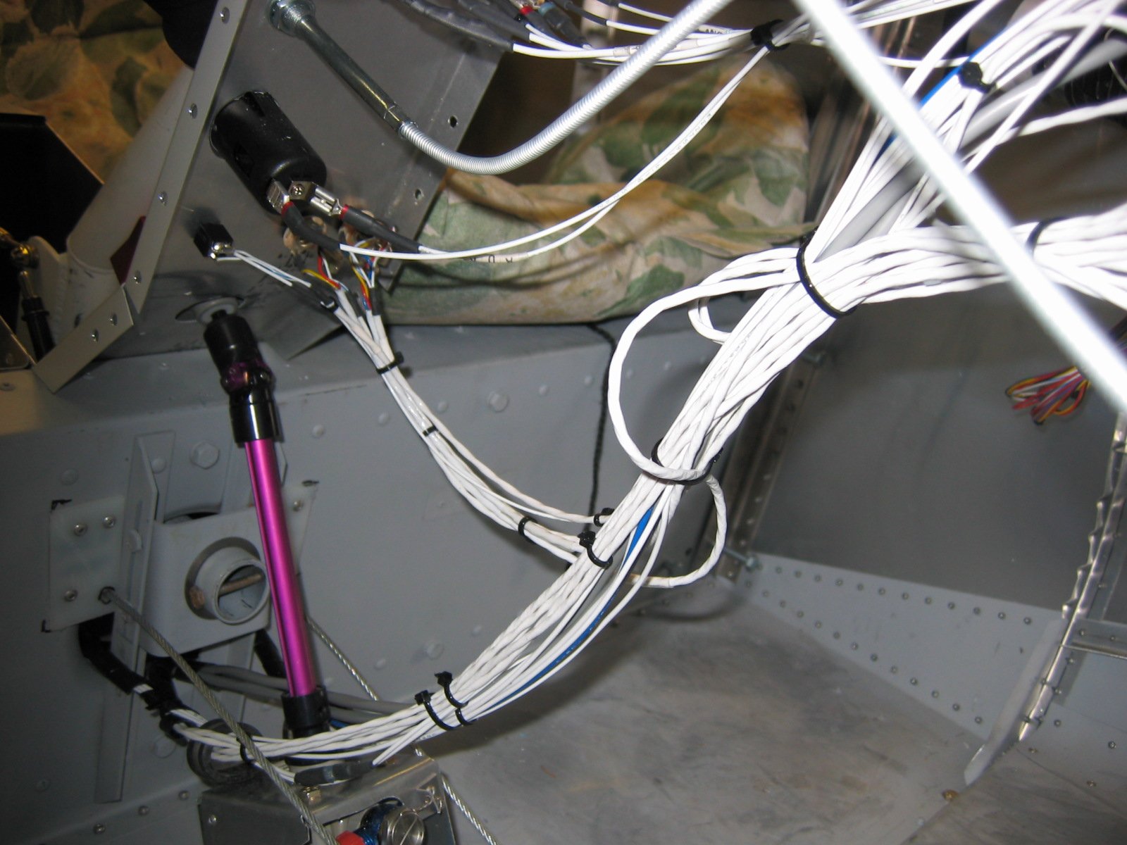 | Quote: | 1-How does wiring from the rear of the fuselage get to the panel?(Under