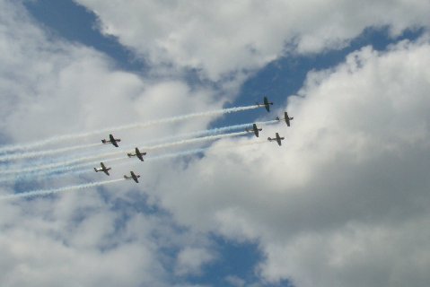 Watched "Gabby" Land do his first and today, second arco routine in the CJ-6 during the WB part of the show. He really flies the CJ nicely. Doing a 8 sided loop, 8 point rolls, etc. He started the routine with a 5 turn spin and watching the CJ spin compared to all the other hot acro ships, it really looks almost "lazy". He does hammer heads (not the CJ's forte) the best I've seen with the what looks like the pivot point being the right wing tip. All his lines appeared right on. It looks like he may perform at OSH too.