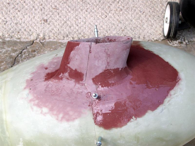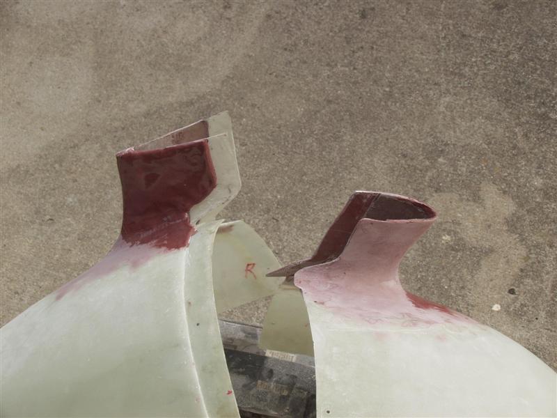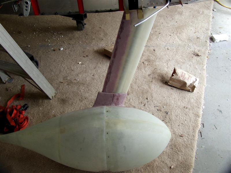 I forgot to take pictures of the initial splitting of the lower fairings. I split them first, then positioned them on the strut fairing with the wheels off the ground, strings pulled to the step, etc. then drilled and clecoed the halves to the wheel pants, then fiberglassed them in position, filled the cleco holes, built up overlapping lips (2" glass cloth/resin) ... and there you go.