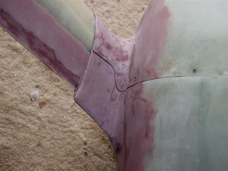 If anyone is interested, I thought I'd post some pictures of how the wheel pants fiberglass work is turning out. This is using Fred Williams' model. (THANKS FRED!) You can also see the covering of the hinge rivets on the strut pants.