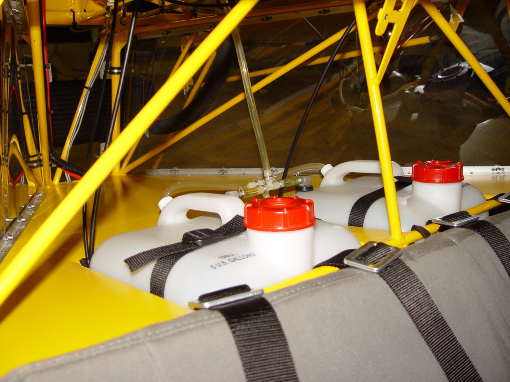 How much do you and your wife weigh together ? I have found that CG is more of a limiting factor than dead weight. You would not want to put anything heavy in the nose, but it would be perfect for coats, a couple sleeping bags, or other light but bulky items. Weight in the area behind the pilots actually helps the CG with 2 people, so heavy items should go there. These are old pictures, I am rerouted the fuel line in the picture that runs up from the tanks to access to the rear area I am talking about. For the type of flying you are talking about, the Kolb MK III is a great plane with unmatched visibility.