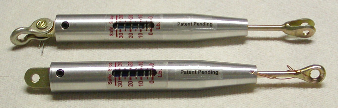 | A pair of in-line tensiometers, with different end hardware configurations, in relaxed state. |