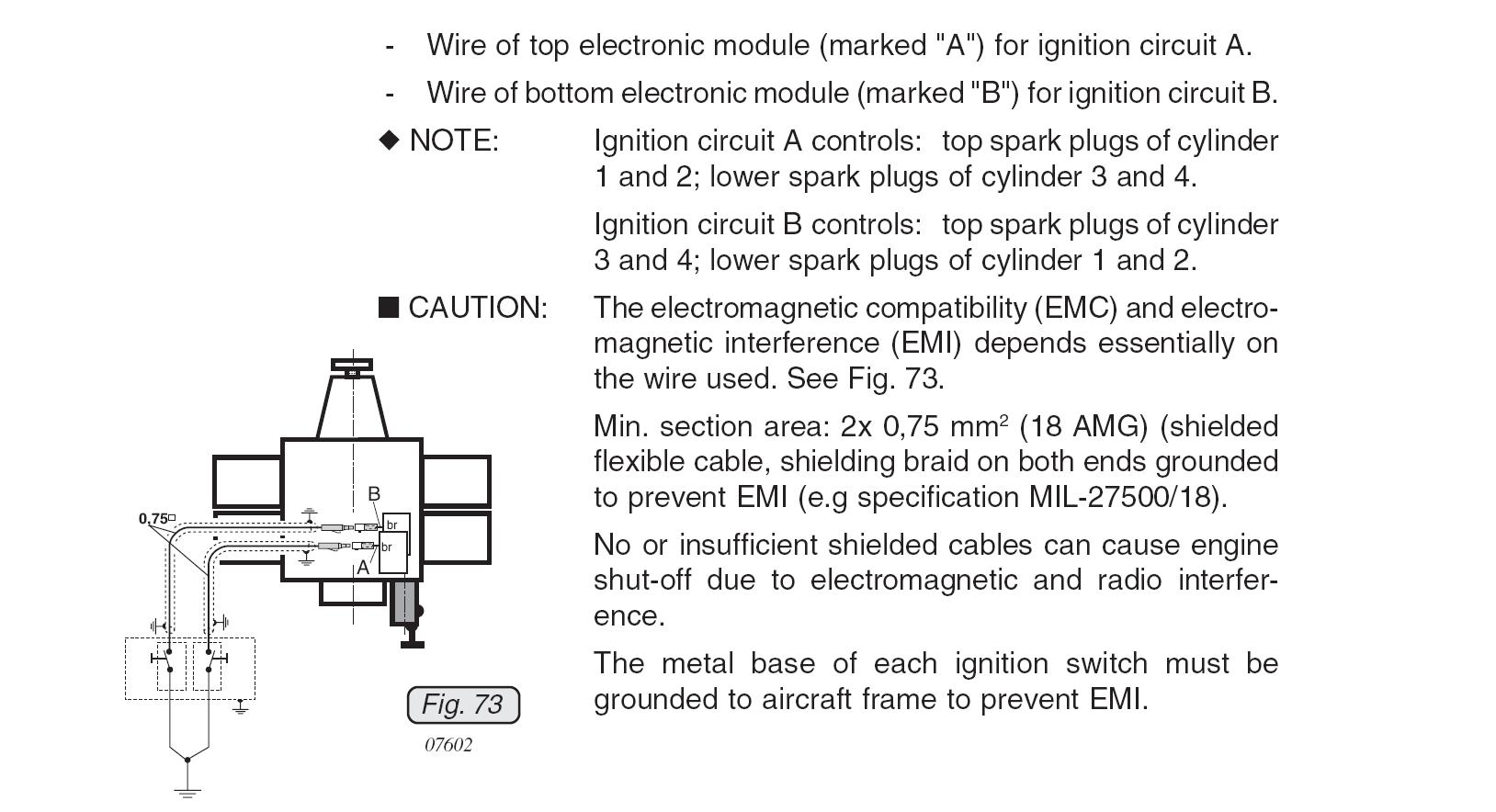 It may be that with the conductor only grounded at one end the mag(s) may be cut off because of EMI within the cable... that’s the way I read it. However grounding at both ends will no doubt cause a great increase in RFI. In such a case I’d recommend a double shielded wire with the outside shield grounded at the engine end only. Sounds like a catch 22. Either the engine may shut itself down or you won’t be able to receive any thing on your radios...Com or nav.