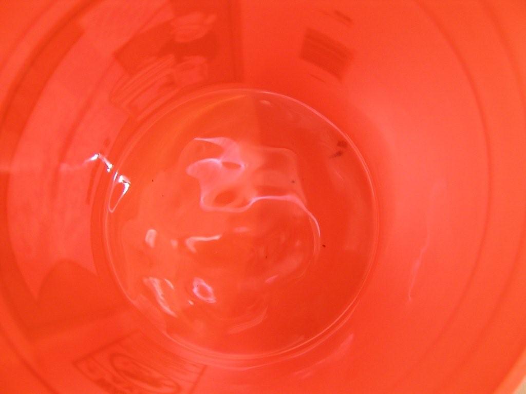shows the bottom of an orange bucket after the flush of my QB tanks with