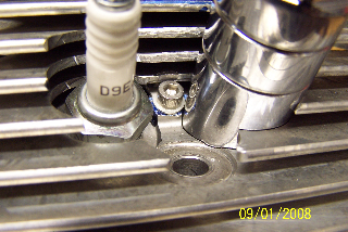 a hole in the head between, and slightly below, the spark plug