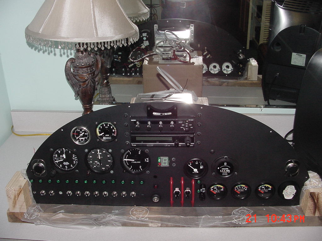 I received the blank aluminum panel in my kit. I designed and laid out all of my instruments using an Auto Cad program and had the openings for all the instruments and avionics cut on a laser machine. I still have the drawing. I will look to see if I can give you the panel thickness as well as the outline of the blank panel. If you cannot get enough measurments off of your old panel to duplicate it, I’ll try to measure mine. As you will see the top and ends of the panel are a compound curve. I’ll get back in touch with you. As a matter of interest, attached are a few pictures of my panel.