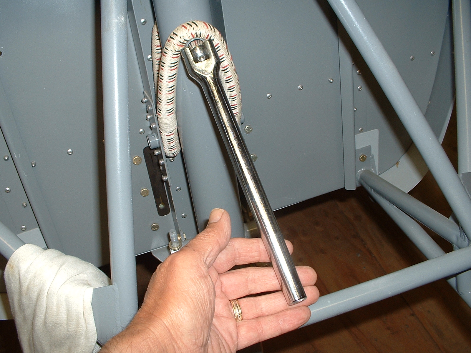 Bill. You can do this for lack of a better tool. Attached is a photo of a Breaker bar I use. 1/2" I think. I cut the handle down to allow use while my rotax 912 is still installed. I cut it to suit so that it just misses everything. One hand has the necessary leverage to lift on and off. You have to slip the bungee onto the tool before lowering it. Installing a new one is easier. I have no plans on buying a tool as this works fine. I havn't tried it yet with all the hoses and cables in place....Geoff