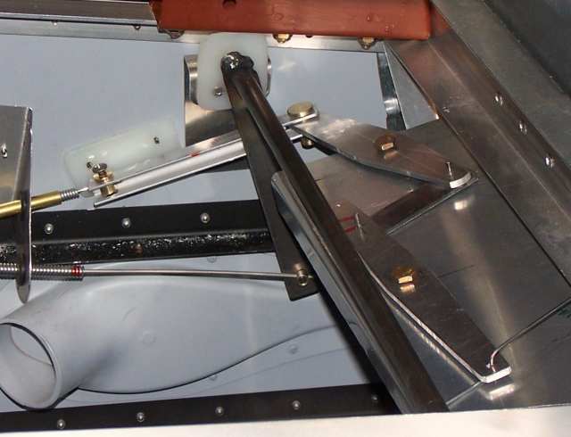 I didn't like the dual throttle in the kit, so I did a major redesign for my plane. I copied the torque tube and moved it inside the cockpit. It mounts with the arms hanging down to the bottom of the horizontal channel that runs between the firewall and instrument panel. It also mounts to brackets on both side skins. The arms are long enough that they hang down to the same level as the throttle on the engine. The throttle cable goes through the firewall at throttle height and makes its way to a new brass fitting that is only an inch long instead of the long one from the Jabiru USA kit.